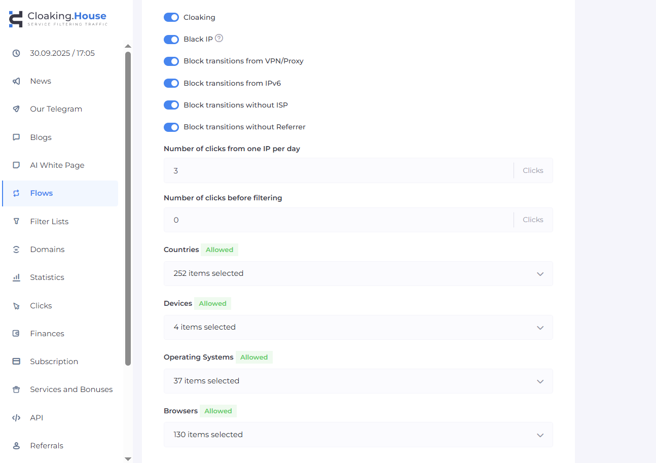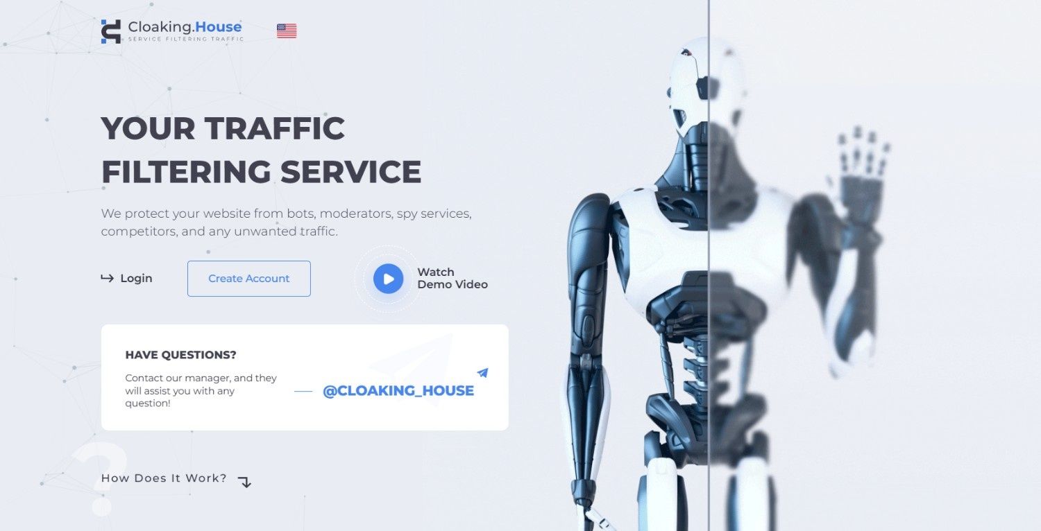 Cloaking.House is a professional cloaking service that allows safe management of advertising traffic and minimizes the risk of blocks. Its main goal is to intelligently separate “clean” and verification traffic, directing regular users to the main content while sending moderators, bots, and scanners to specially prepared pages.