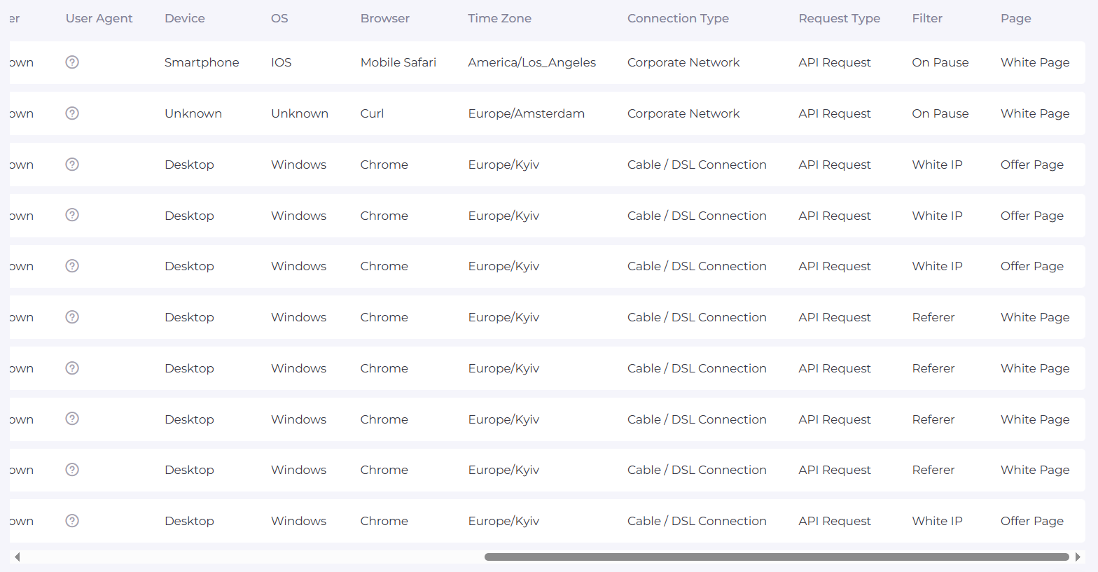 - Triggered filter: GEO, IP, Device, User-Agent, etc.