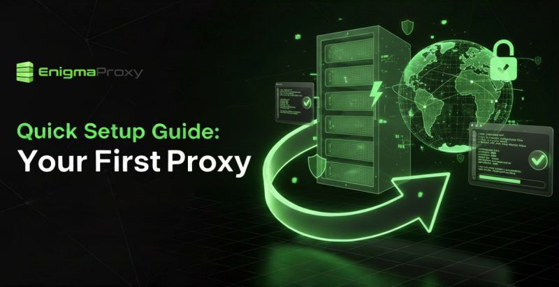 A stylized digital banner illustrating a proxy setup process. In this blog post, we will break down what proxies are, describe the different types and their use cases, and provide a step-by-step guide to getting started with EnigmaProxy. You’ll also learn how to integrate EnigmaProxy’s proxies into your browser, scraping tools, and applications, along with best practices for safe usage and troubleshooting. By the end, you’ll see how EnigmaProxy makes it easy to harness the power of proxies for your needs.